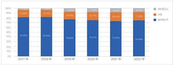 雄安新區(qū)常住人口教育水平變化(2017年-2022年)
